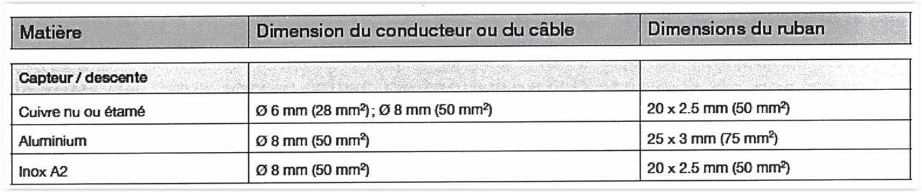 4022 - Quelles dimensions de conducteurs pour les capteurs et descentes?