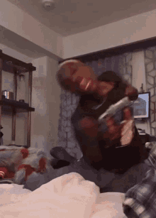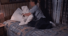 a cloth bag filled with something soft that you sit on or lean against to make you comfortable