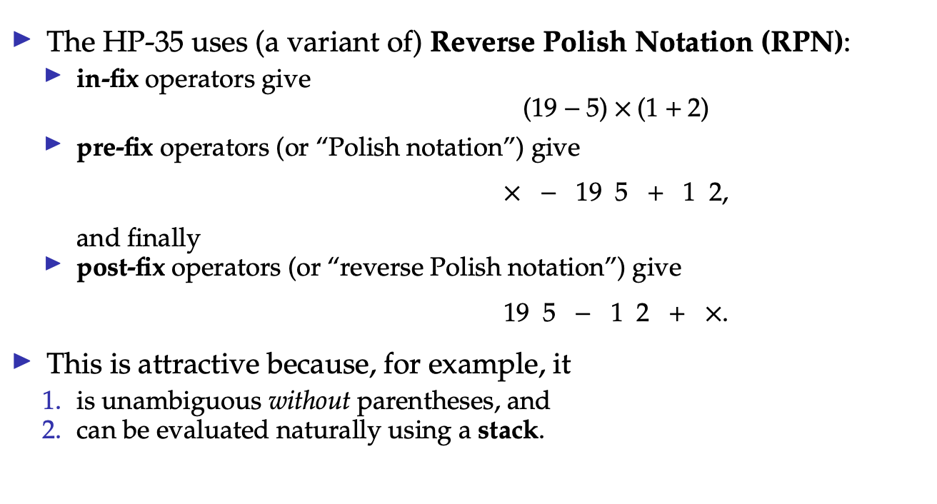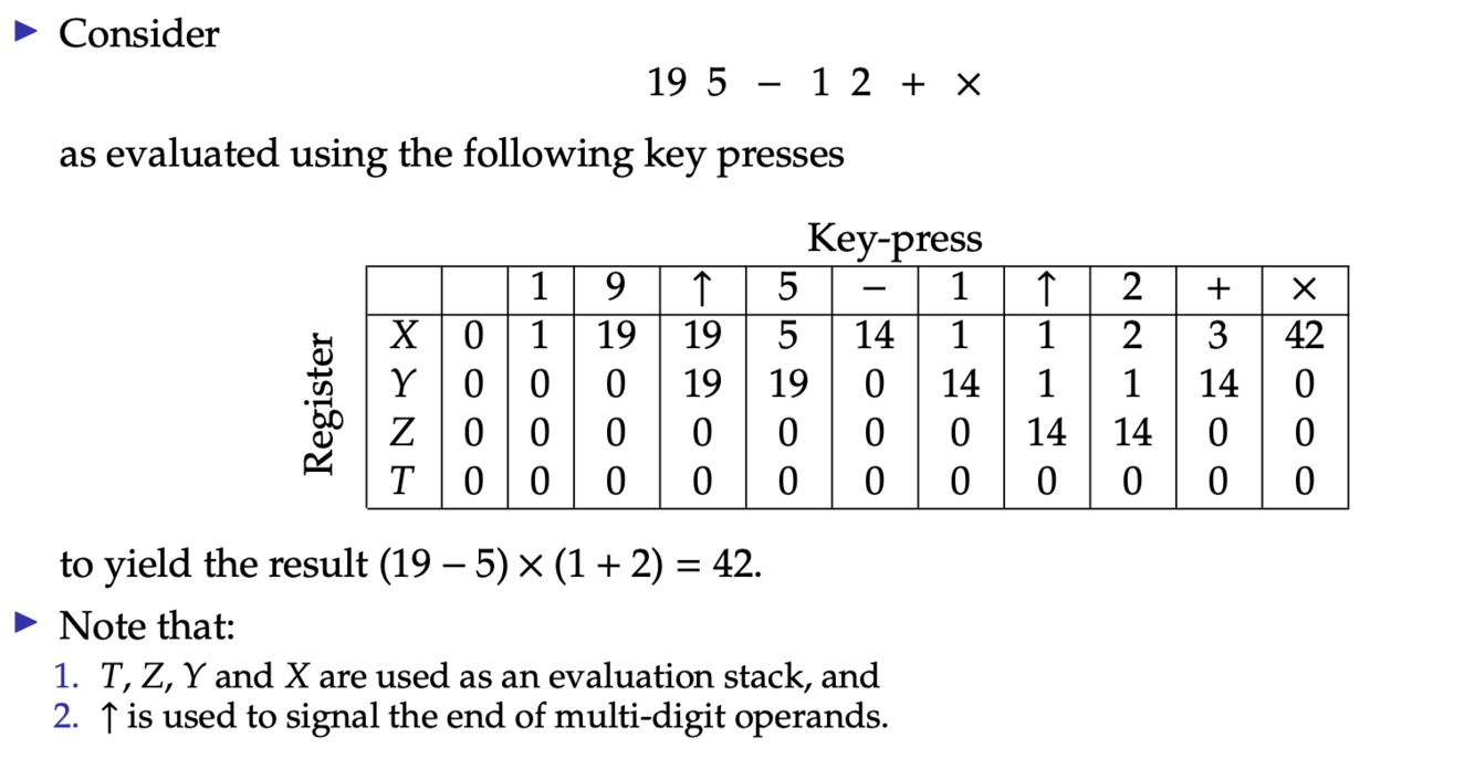 Values are stored on stack and first two popped for operation and reintroduced on top