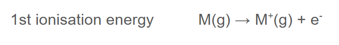 First ionisation energy of an element is the energy required to remove an electron from each atom in one mole of atoms in the gaseous state.
