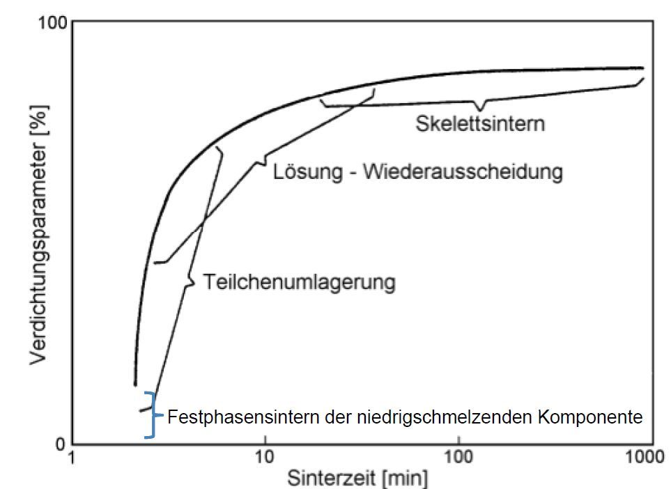 Verdichtung durch Umordnung fester Teilchen die von der Schmelze umschlossen werden