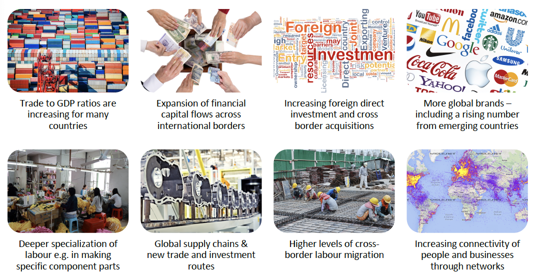 inter-connected through global networks of trade, capital flows, and the rapid spread of technology and global media.