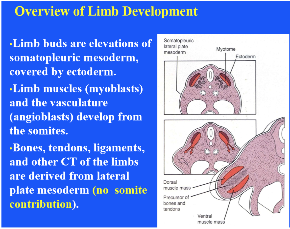 Limb buds are derived from somatopleure,but the limb muscles and vasculature develop from somites.