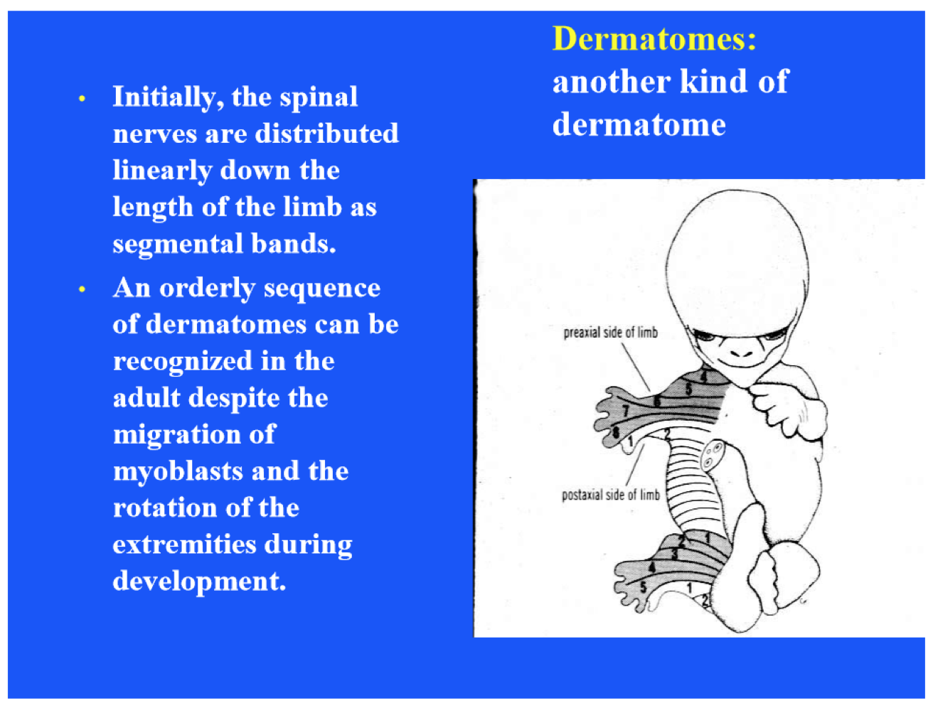 How are dermatomes initially organized?