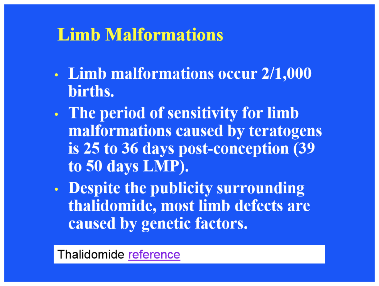 The important concept on this slide is the mechanism for differentiation of individual digits from webbed-hands and feet (fingers and toes). Please remember that the apical ectodermal ridge (AER) has “moved” to the end of the extremity (hand or foot). Cell death in the AER creates separate ridges for each digit. Cell death in the interdigital spaces produces separation of the digits. Digit separation is complete at about 56 days of development (timing provided for information purposes only!). The apoptotic events are important conceptually and test-wise.