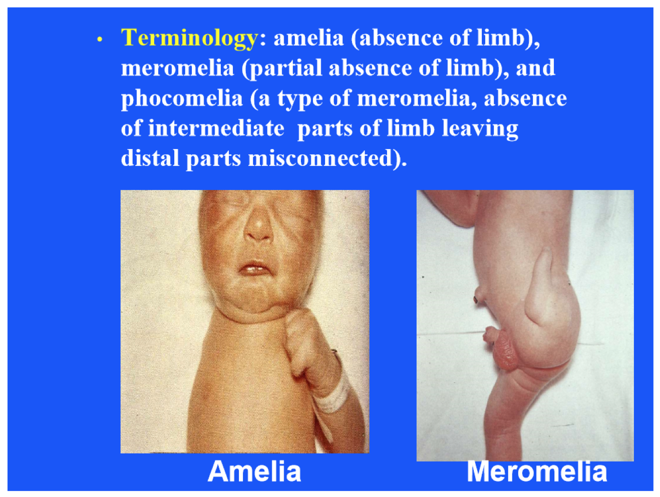What is amelia? Meromelia? Phocomelia?