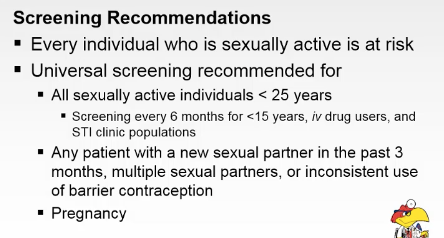Columnar epithelium - infections of the endocervix, urethra, oropharynx, rectum or conjunctiva