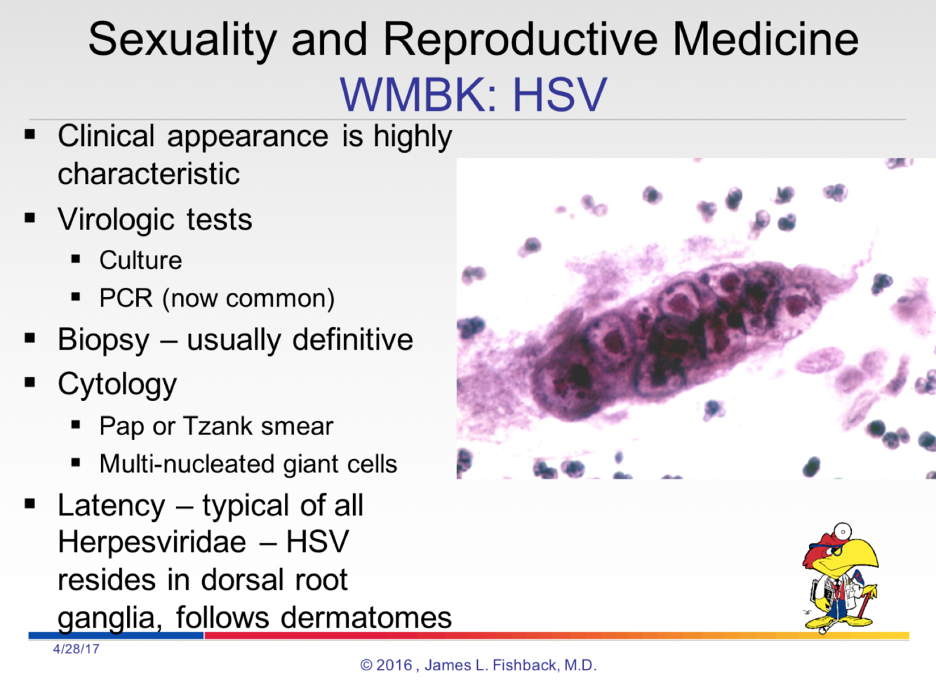 Morphology. All HSV lesions are marked by formation of large, pink to purple intranuclear inclusions (Cowdry type A) that contain intact and disrupted virions and push darkly stained host cell chromatin to the edges of the nucleus (Fig. 8-12). Although cell and nuclear size increase only slightly, herpesvirus produces inclusion-bearing multinucleated syncytia.
