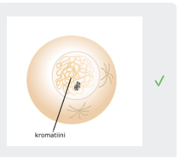 Kromatiinirihmat pakkautuvat tiiviiksi kromosomeiksi.