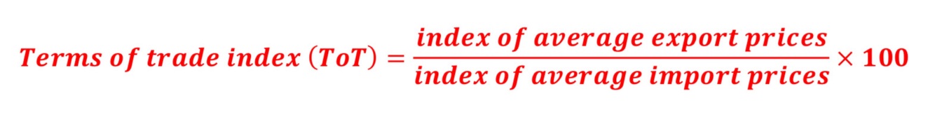 What is the formula for the terms of trade index (TOT)?