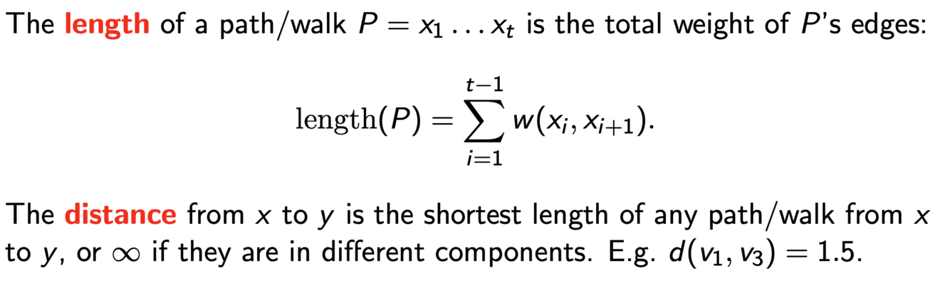 What is the length of a walk in an unweighted graph + what is the distance between 2 vertices