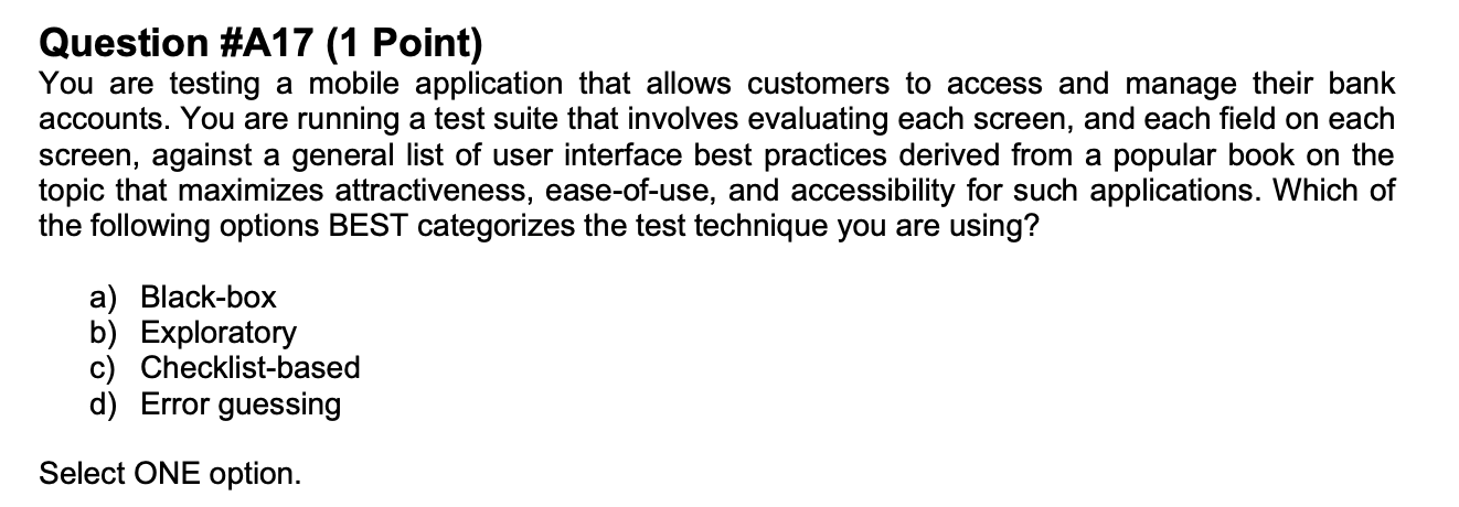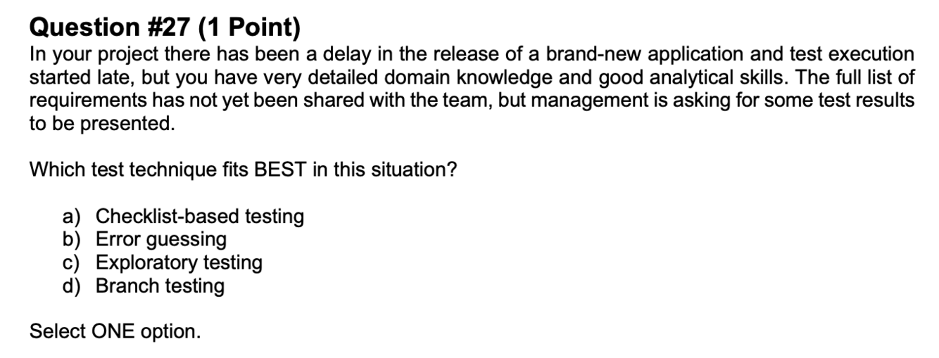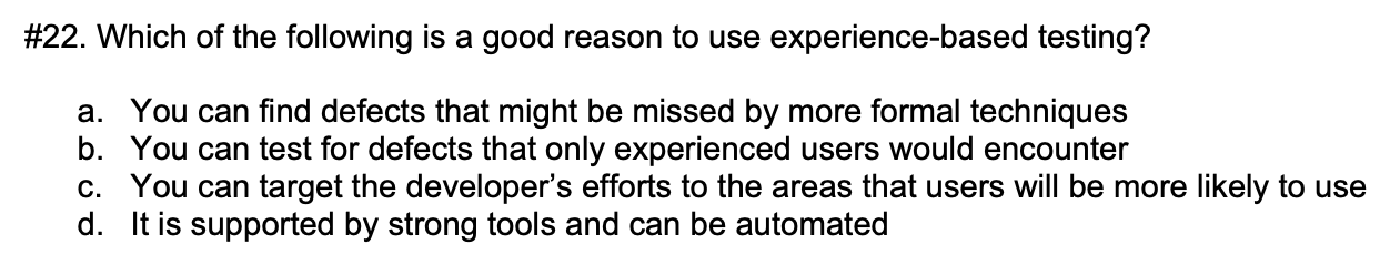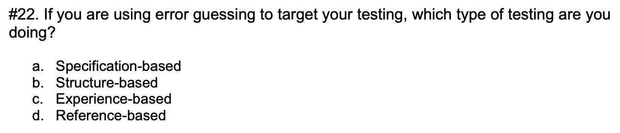 ISTQB > 4.4 Experience Based Test Techniques > Flashcards