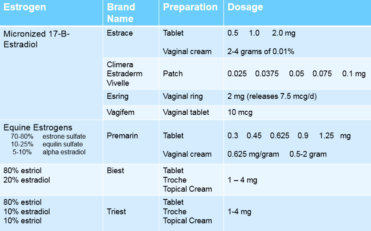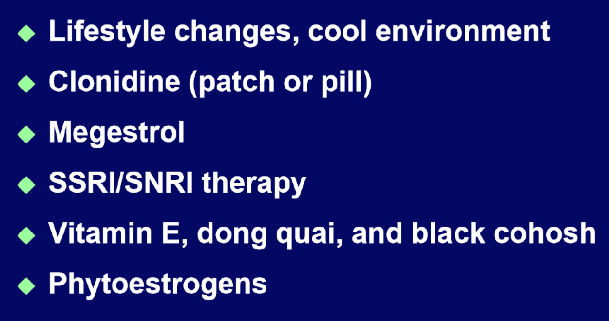 Estrogen replacement therapy (takes 2-3 wks to kick in)