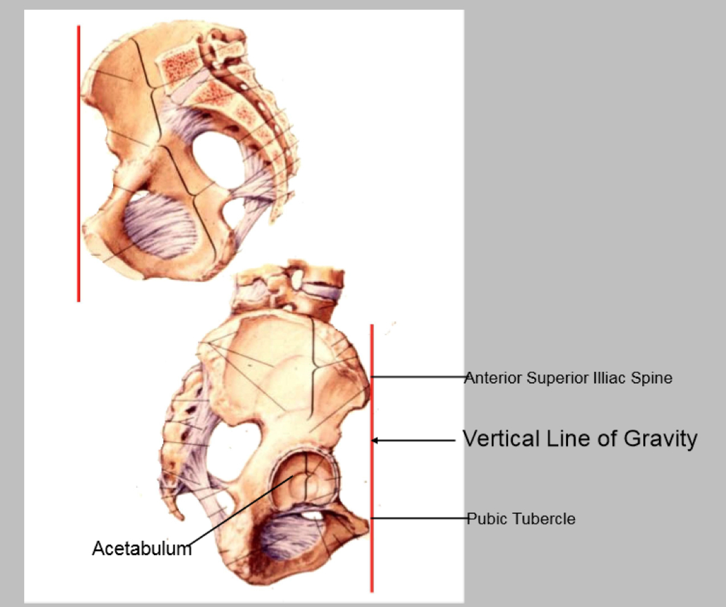 What is the orientation of the pelvis in the human body?