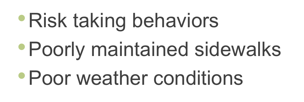 Decline in functional status, nursing home placement, increased used of medical services, fear of falling (decreased QOL, loss of socialization, not leaving their home)