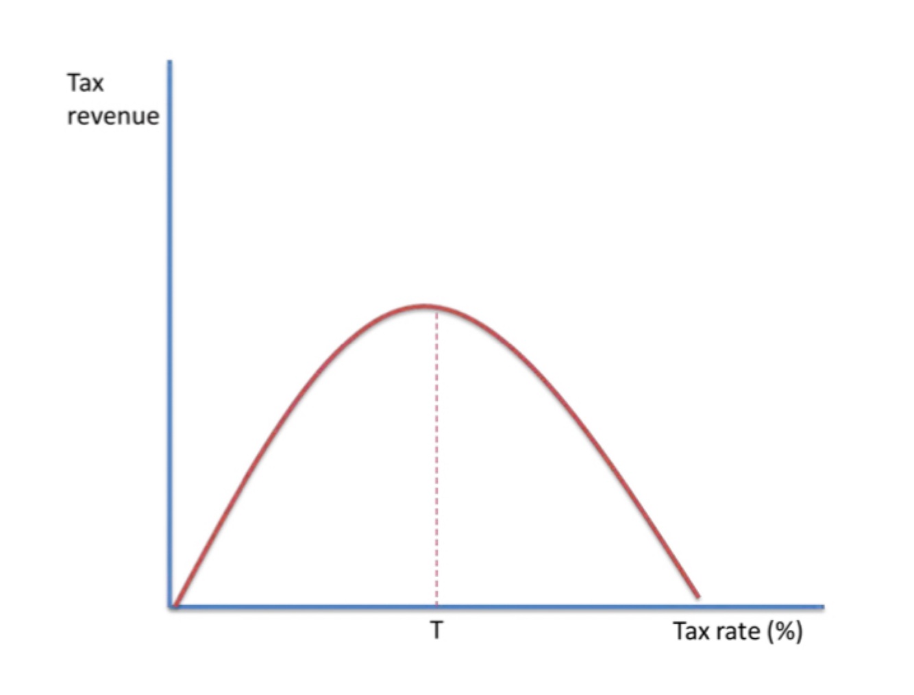 up until point T, tax revenue increases. After point T people do not think it is worthwhile working and the lack of incentive leads to falling tax revenue