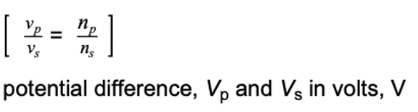 ratio of p.d. across primary and secondary coils of a transformer depends on the ratio of the number of turns on each coil
