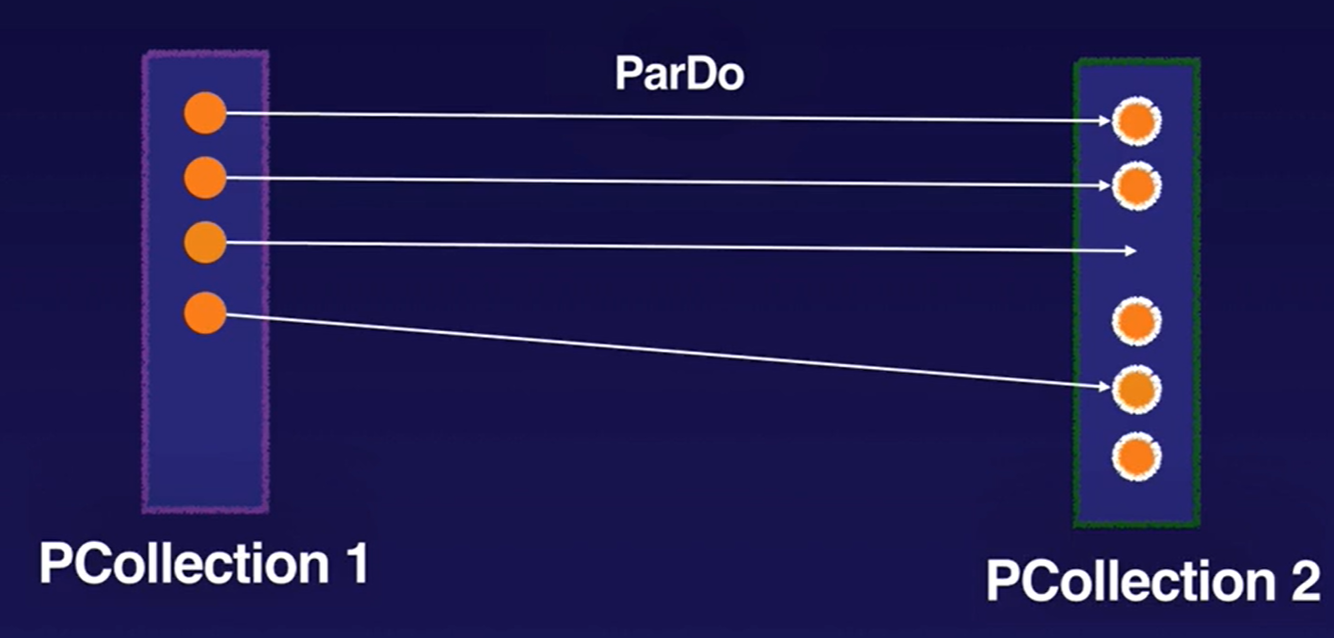 ParDo collects zero or more output elements into an output PCollection. The ParDo transform processes elements independently and possibly in parallel.