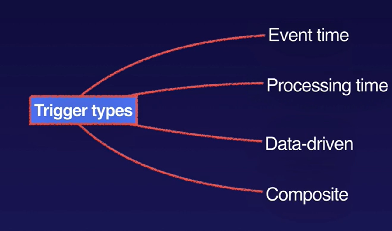 Triggers determine when to emit aggregated results as data arrives. For bounded data, results are emitted after all of the input has been processed. For unbounded data, results are emitted when the watermark passes the end of the window, indicating that the system believes all input data for that window has been processed. Apache Beam provides several predefined triggers and lets you combine them.