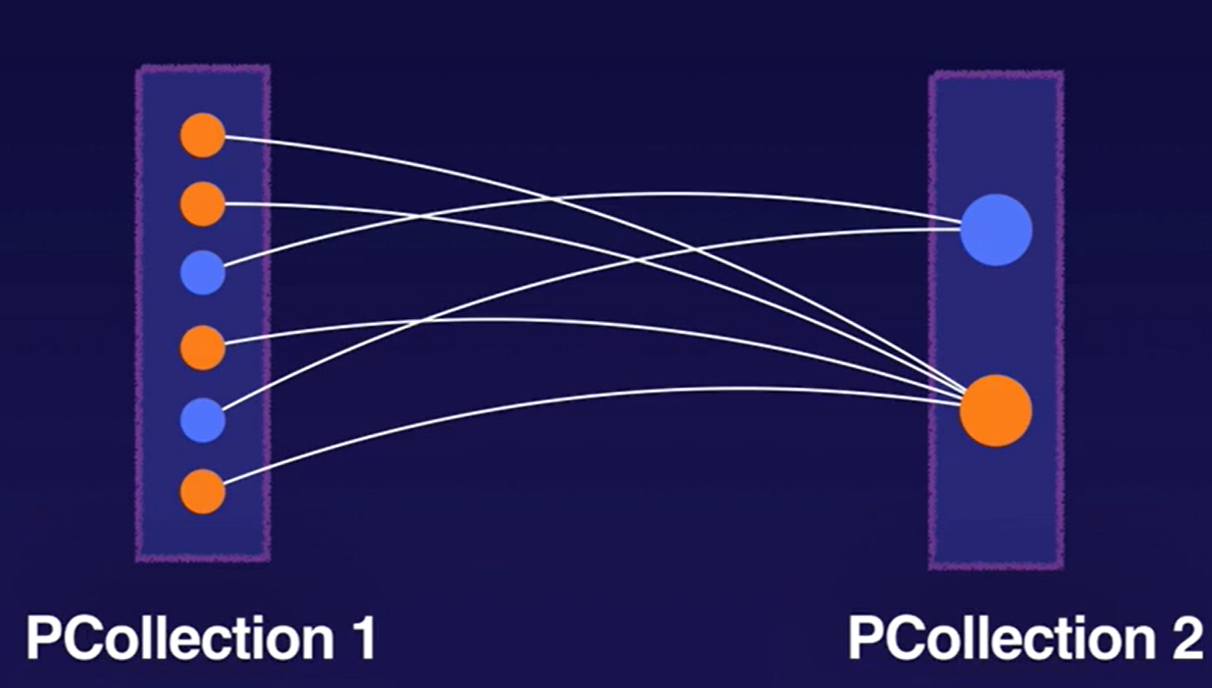 Note: The Flatten transformation merges multiple PCollection objects into a single logical PCollection, whereas Join transforms like CoGroupByKey attempt to merge data where there are related keys in the two datasets.