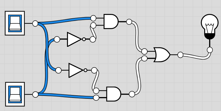 -on if the inputs are different, off if the outputs are the same