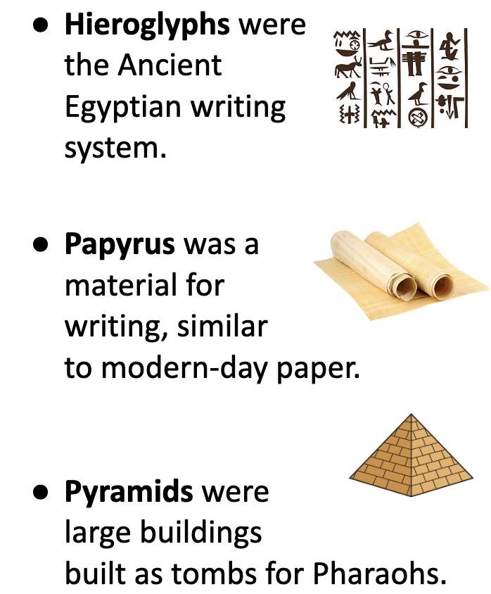 Explain three major achievements of the Ancient Egyptians.