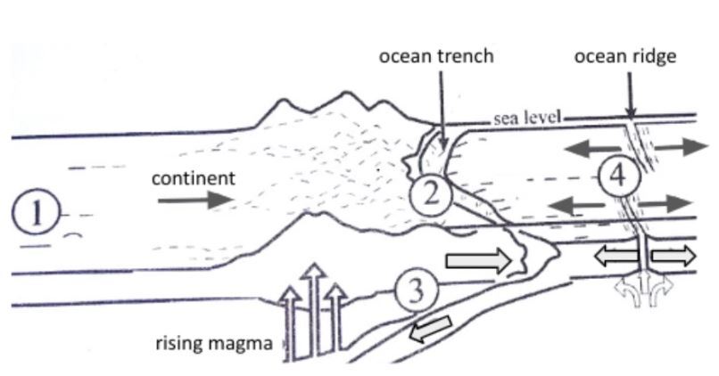 At which location is an earthquake LEAST likely to occur at: 1,2,3,or 4? Explain why.