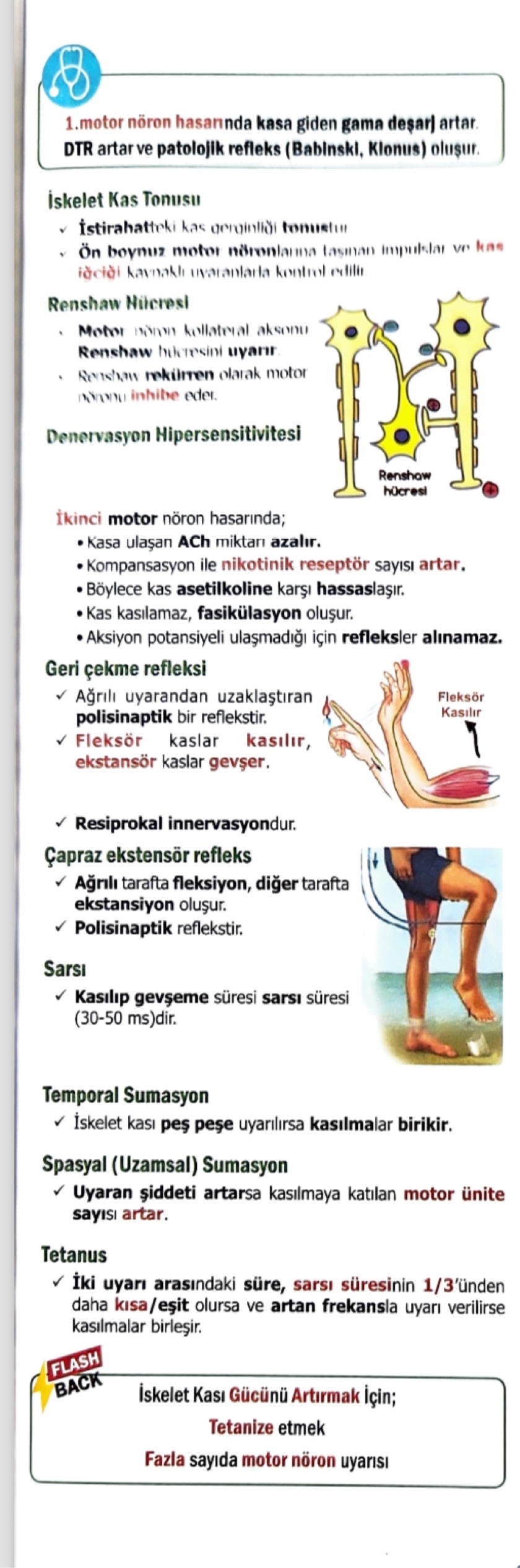Motor nöron kollateral aksonu renshaw hücresini uyarır . Renshaw rekürren olarak motor nöronu inhibe eder