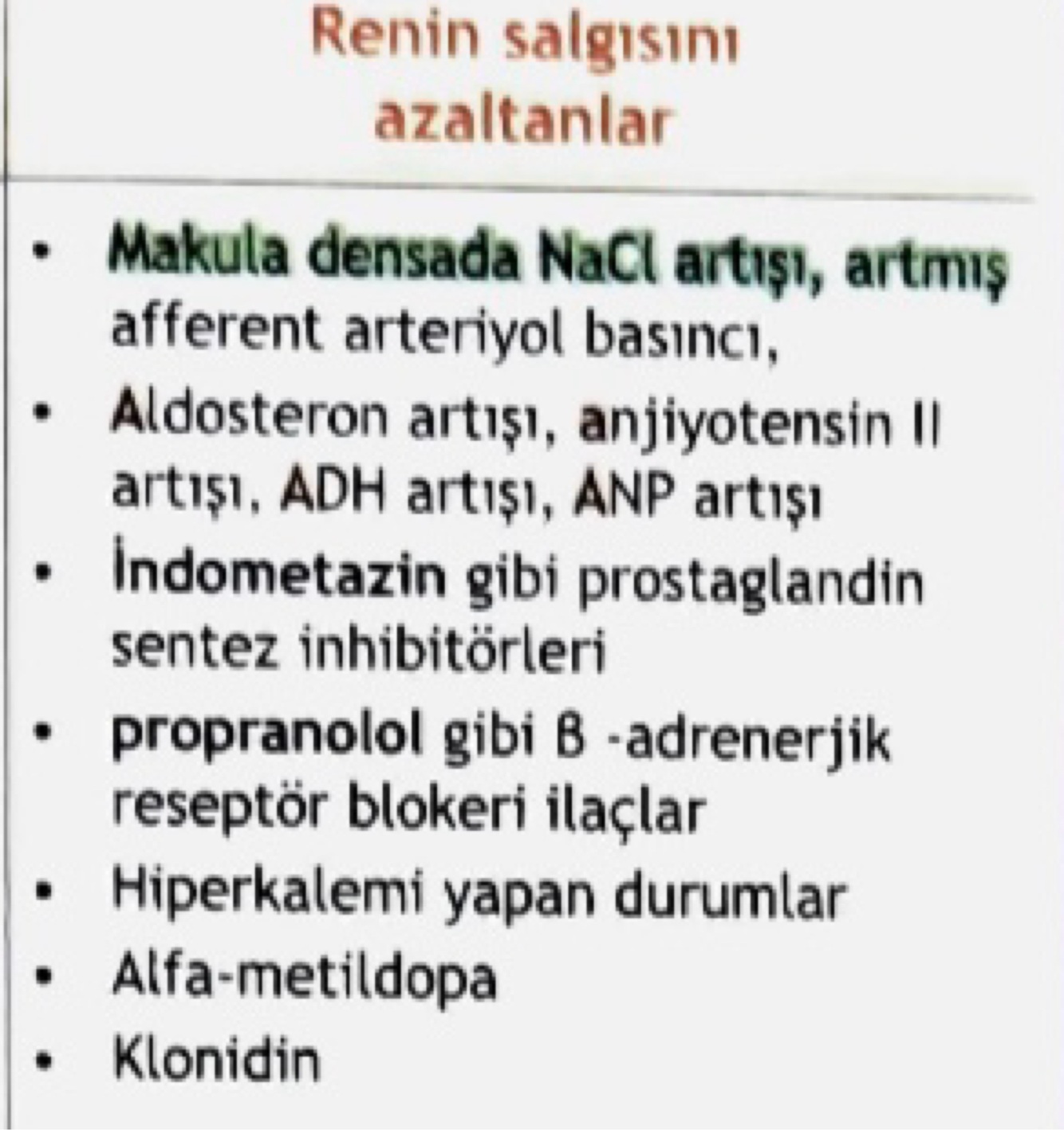 Renin salınımını azaltan faktörler?