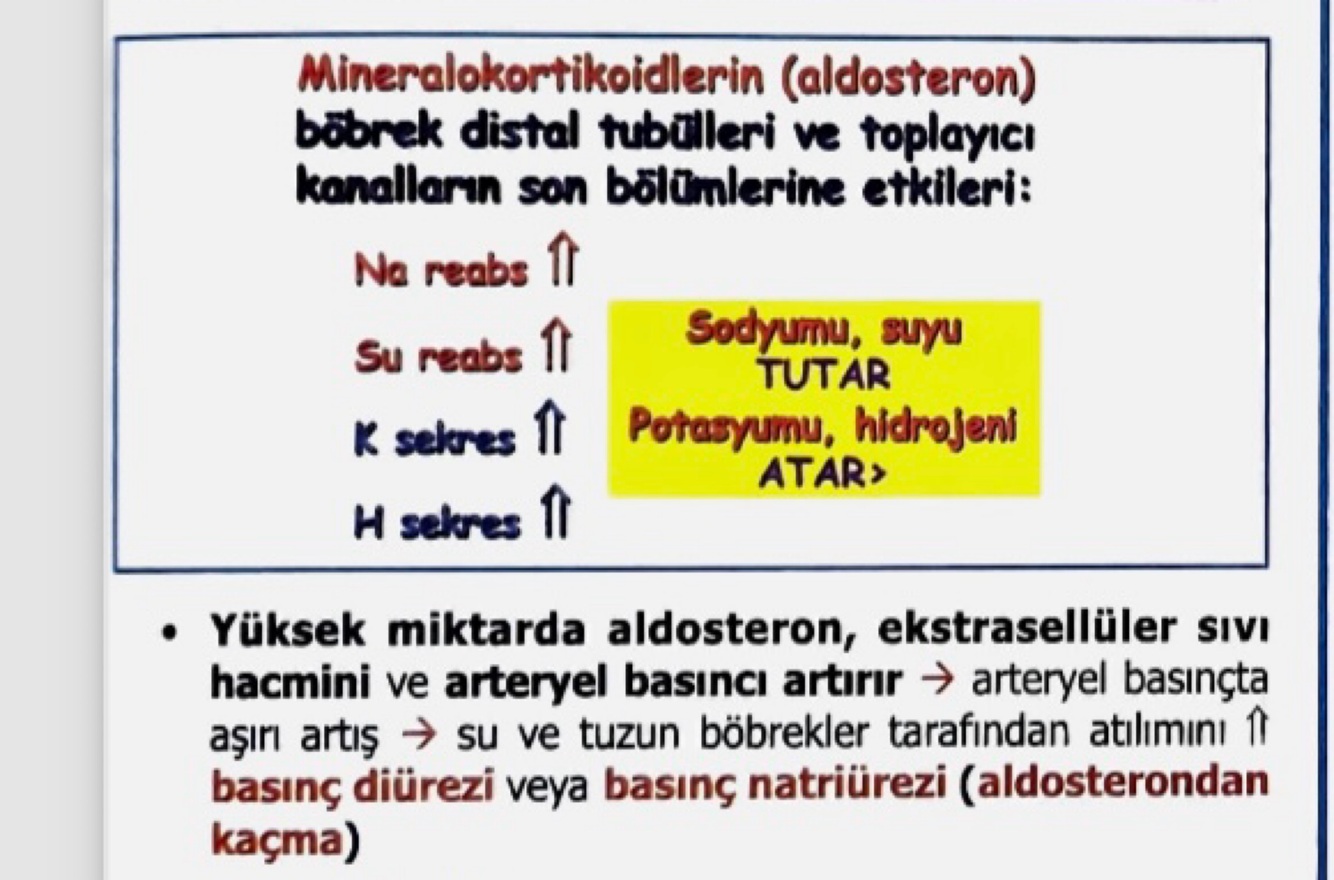 Ekstrasellüler sıvı hacmini ve arteriyel basıncı artırır. Arteryel basınçta aşırı artış su ve tuzun böbreklerden atılımını artırır