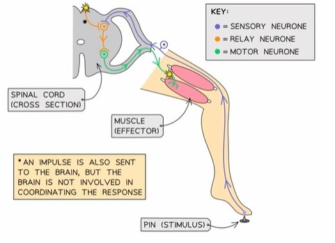 Some reflex talks don’t have really new ones so the impulse is able to very quickly be transmitted straight from the sensory neurone to the motor neurone