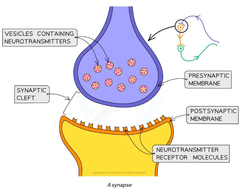 In a reflex arc, there are synapses between the sensory and relay neurones, and the relay and motor neurones
