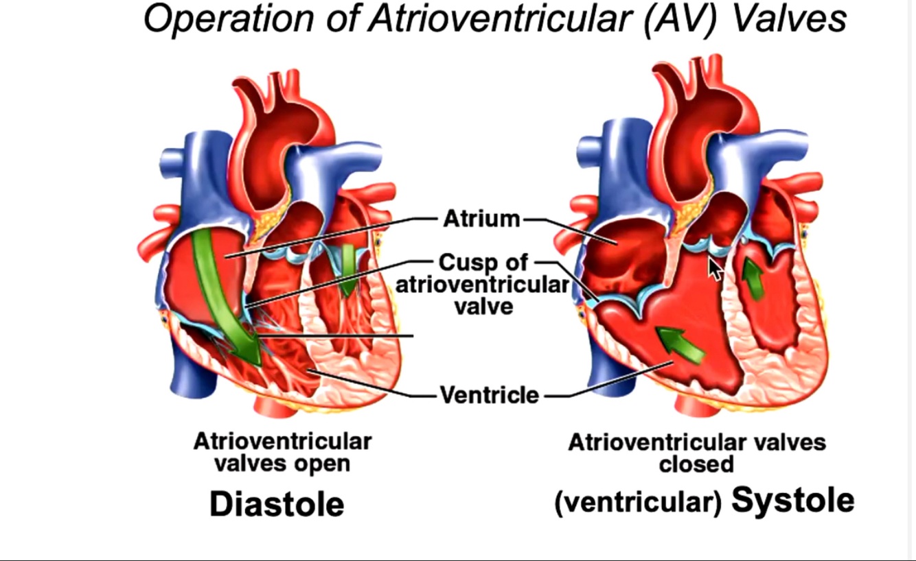 Operation of atrioventricular valves (Diastole and systole)