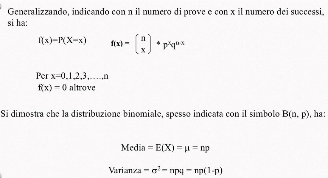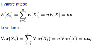 -media E(x)= µ=np (numero di prove moltiplicato per la probabilità di successo)