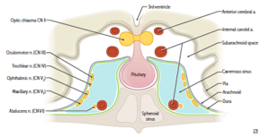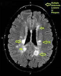 Periventricular plaques (areas of oligodendrocyte loss and reactive gliosis)