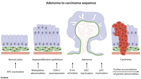Describe the adenoma-to-carcinoma sequence of colorectal cancer