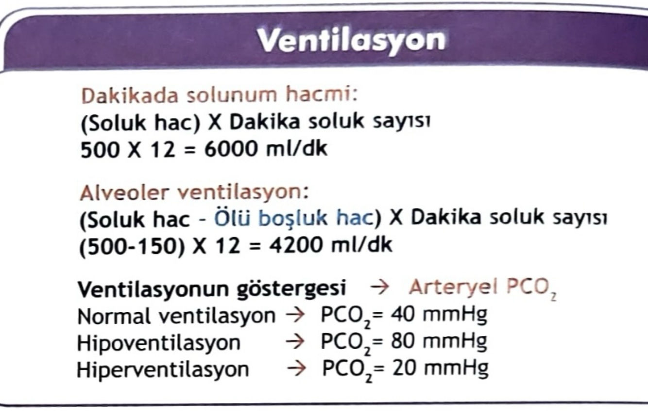 (Soluk hacmi - Ölü boşluk hacmi) X (Dakika soluk sayısı)