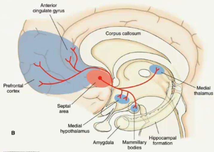 Via medial forebrain bundle:
