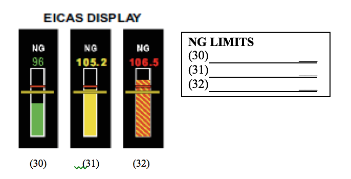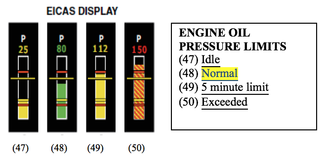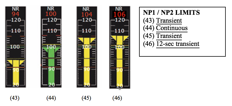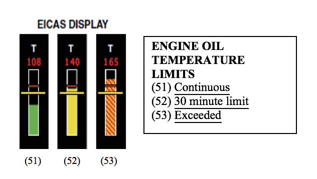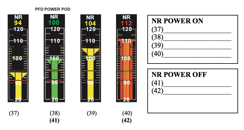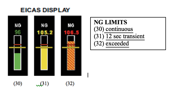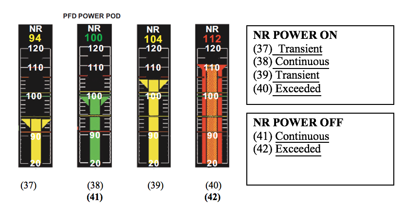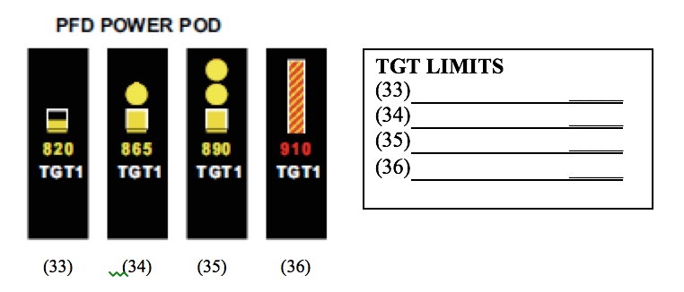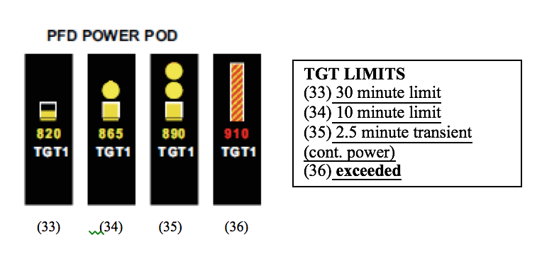 ENGINE INSTRUMENT CREW ALERTING SYSTEM (EICAS) AND PFD POWER POD COLOR CODES.