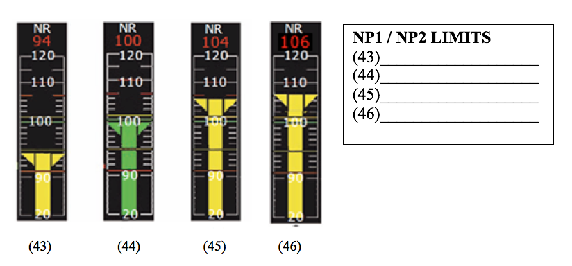 Routine stops will be with engine(s) off, NR below ______% and with ______–______ psi applied to stop the rotor in not less than ______seconds.