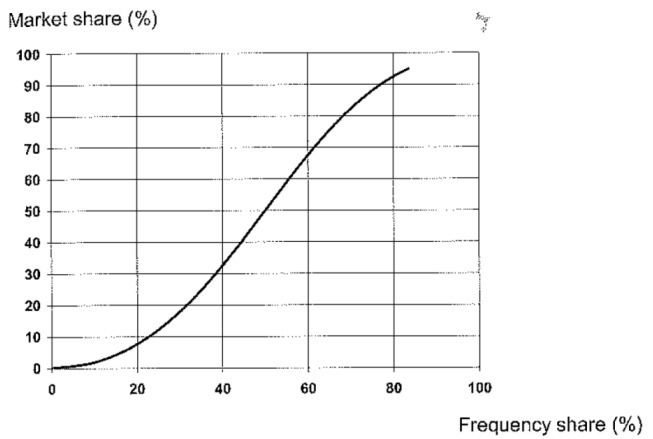 Formel: Marktanteil = (Frequenzanteil^1.8)/(1+Frequenzanteil^1.8)