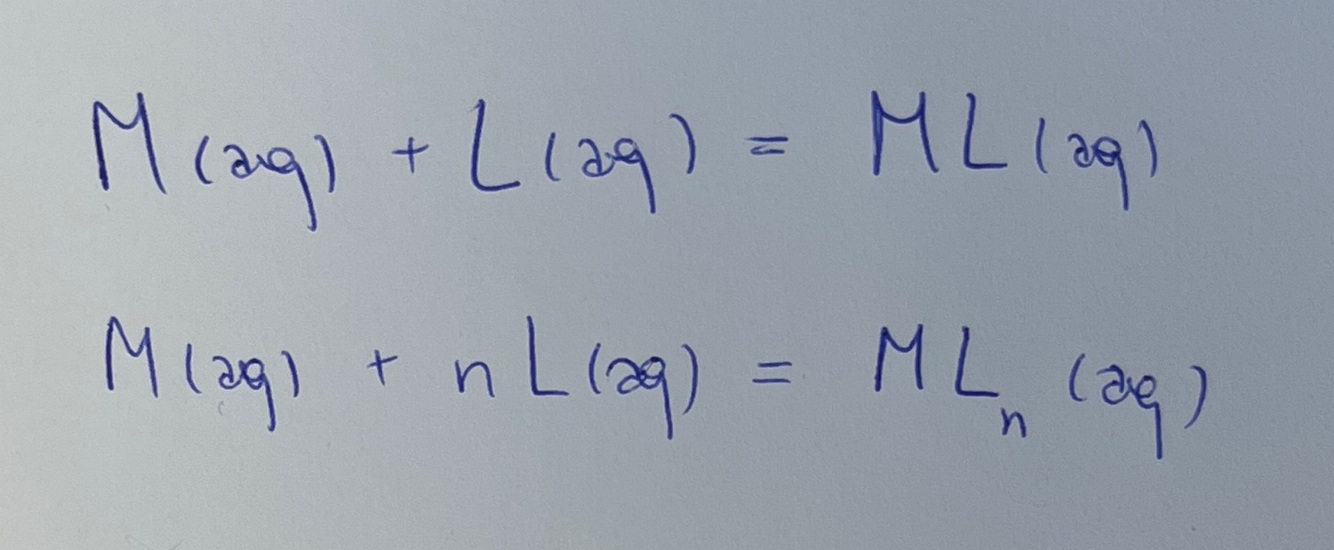Un édifice polyatomique soluble dans l’eau issu de l’association d’une espèce centrale (métallique) neutre ou cationnique (car réducteurs) et d’un ou plusieurs ligands (neutres ou anioniques) par l’intermédiaire de liaisons de coordination (ie que c’est la même espèce qui apporte deux électrons).