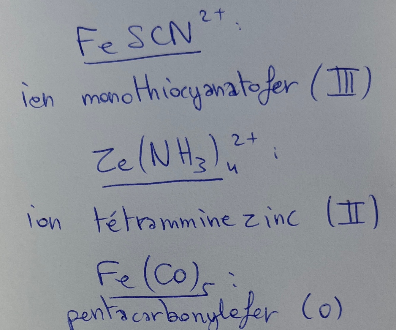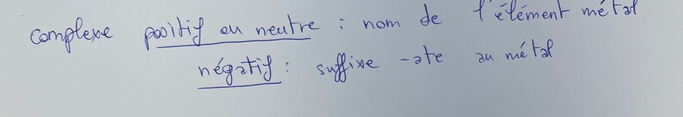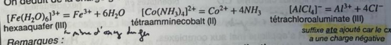 Donne le nom des complexes