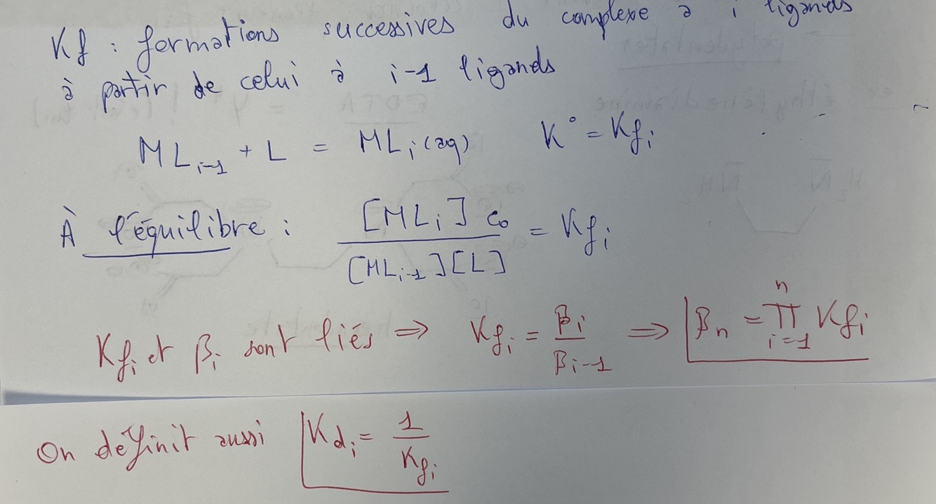 Donne la définition de Kf, fais l’équation de réaction canonique et écris sa constante de réaction. Qu’à t on a l’équilibre ? Comment le lier à βᵢ ? a Kd ?