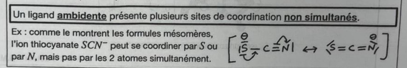 C’est quoi un ligand ambidente ? Donne un exemple