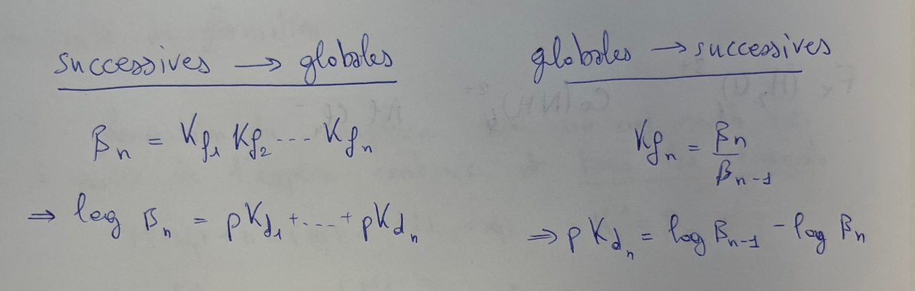 Comment tu lies les constantes de formations globales et successives ? log(βₙ) ? pKdₙ ?