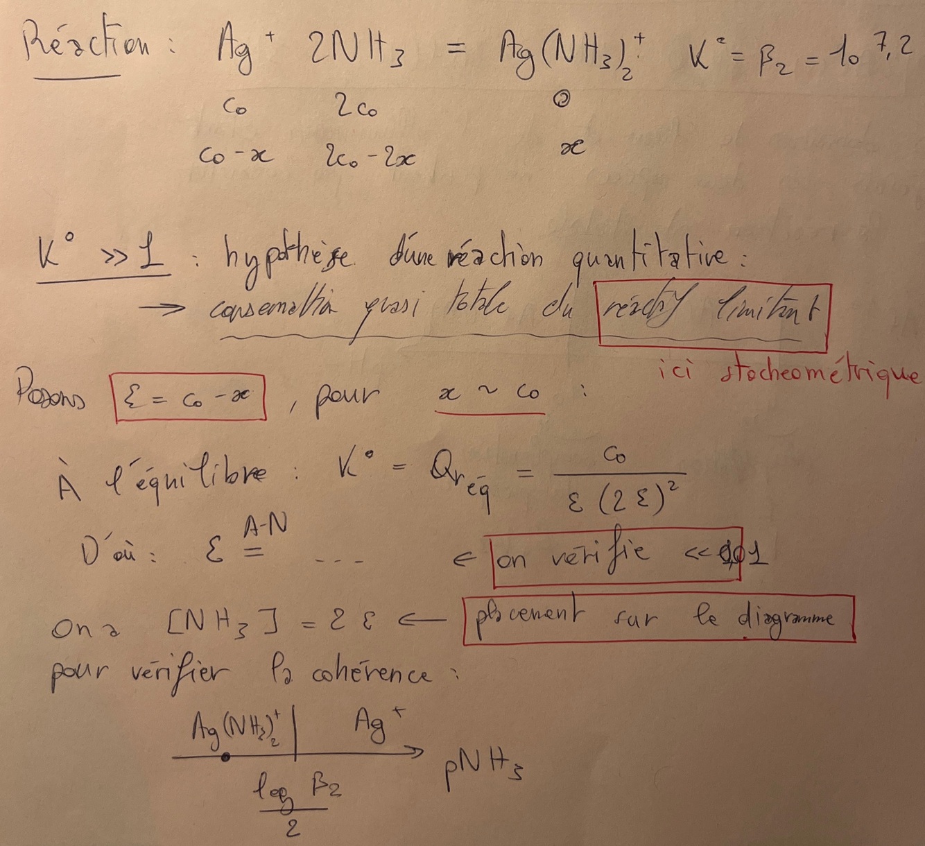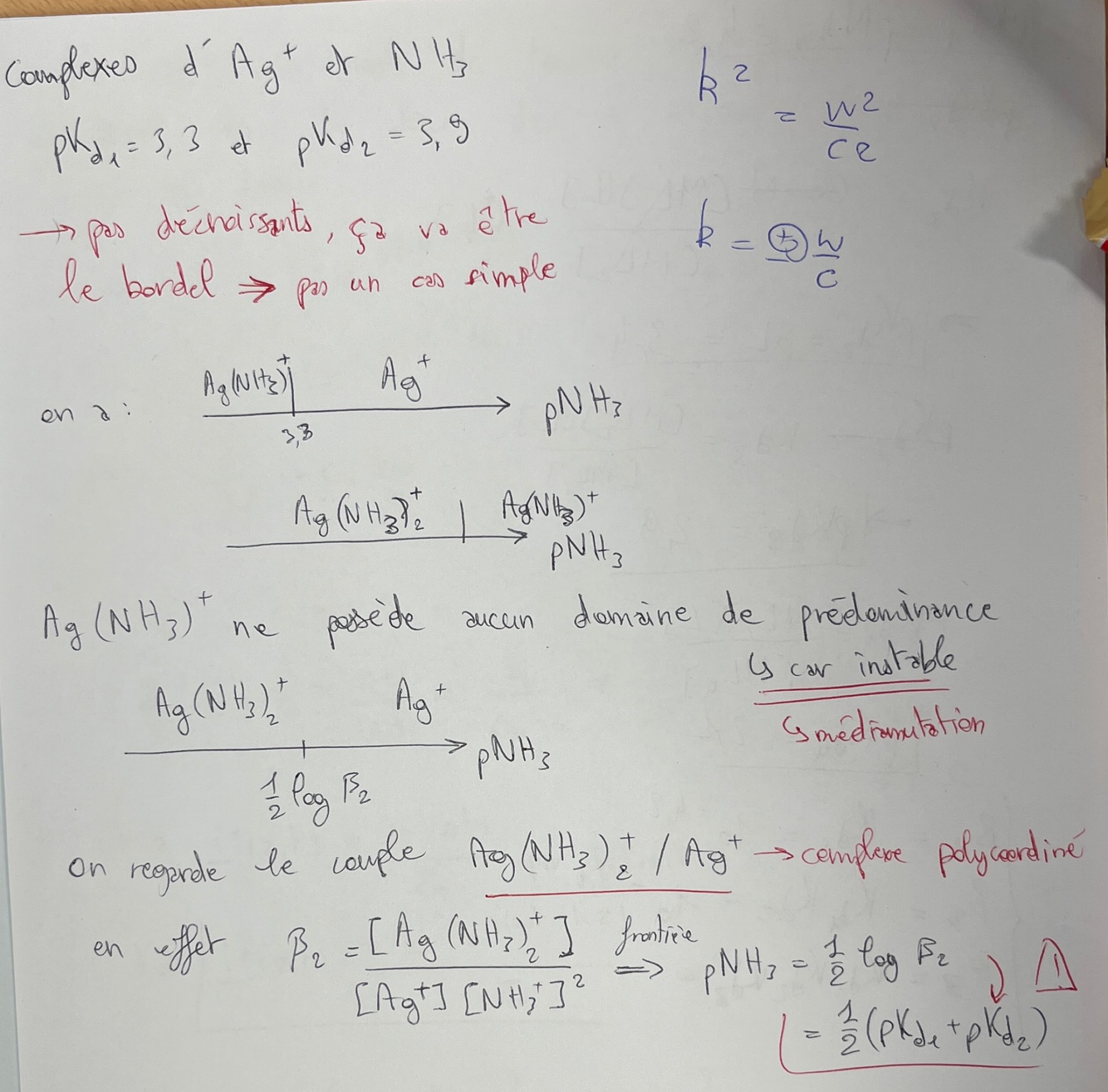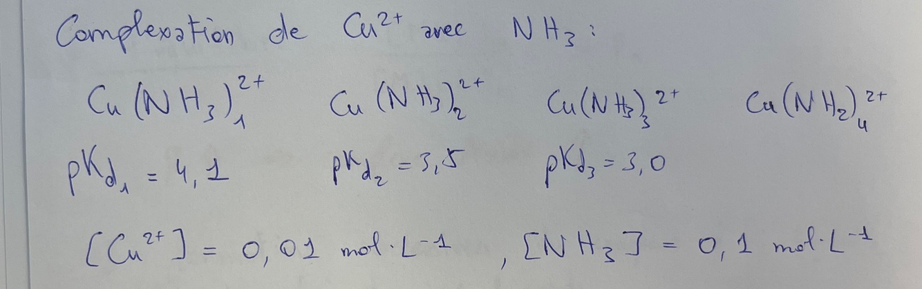 Réflexe ? Établis les diagramme de prédominance de chacun des couples. Que dire de Ag(NH₃)₂⁺ ? Donner le diagramme de prédominance final en calculant le pNH₃ à la frontière