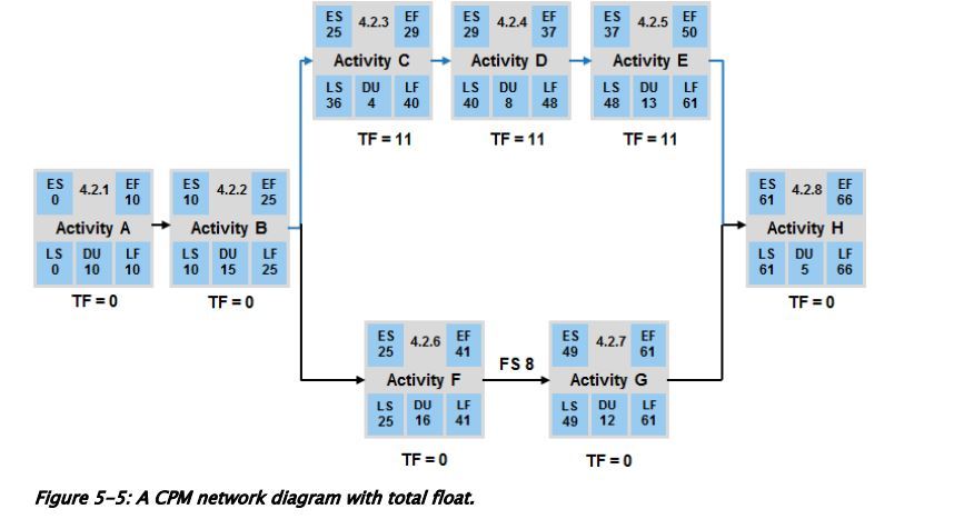 minimum project duration and determines the amount of scheduling flexibility that exists in a project. It uses all four precedence relationships and calculates one early and late start and finish date for each activity using a single-duration estimate. The longest path through the network the critical path—is identified. Then float is calculated to identify activities where there is some