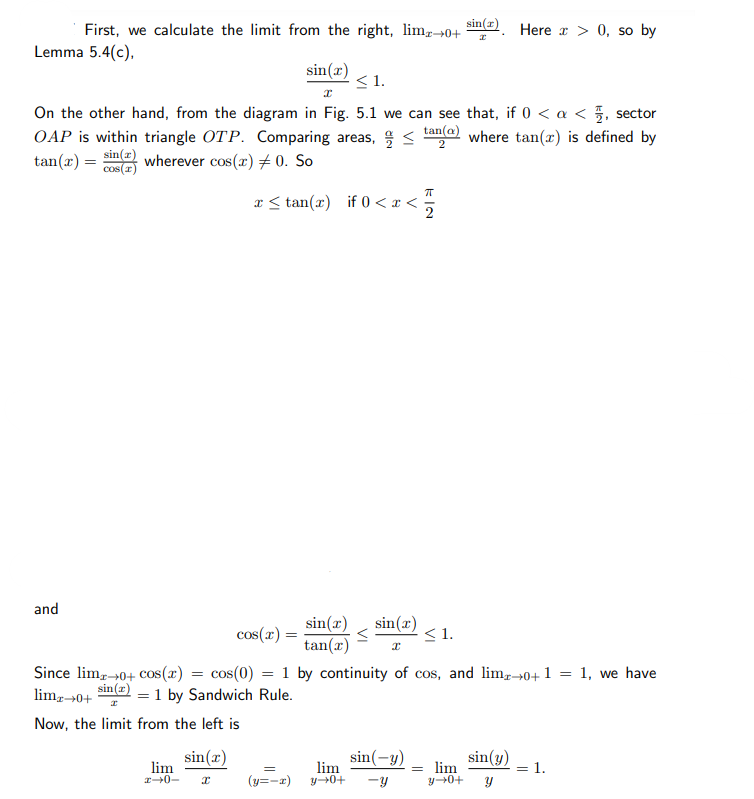 Since both limx→0+ and limx→0− are equal to 1 we conclude the limit equals 1