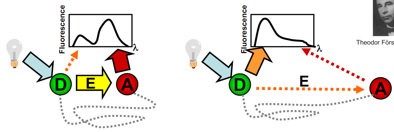 An excited donor fluorophore can transfer energy to an acceptro through non-radiative dipole-dipole coupling
